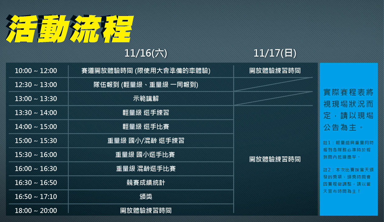 混齡組 : 參賽者年齡 13 歲以上(國小以上至成人混齡參賽) *11/16台北場因報名人數不足開放標準 ,固取消此組別比賽。