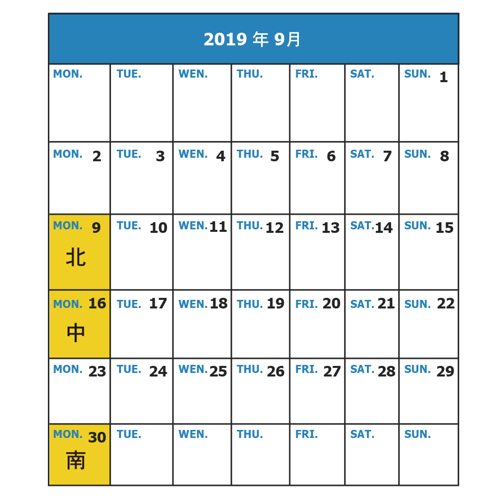 北部◆9/9(一)9:00-12:00 / 14:00-17:00