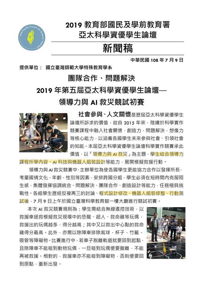 容 AI科技與機器人組裝等能力 展開模擬救援行動